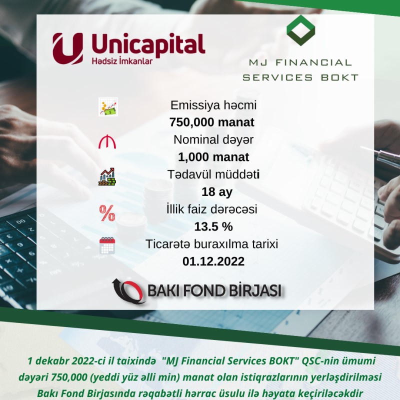 18 oktyabr 2022-ci il tarixində Bakı Fond Birjasının (BFB) Listinq Komitəsinin qərarı ilə "MJ Financial Services BOKT" QSC-nin ümumi dəyəri 750 min manat olan istiqrazları standart bazar seqmentində listinqə daxil edilib.