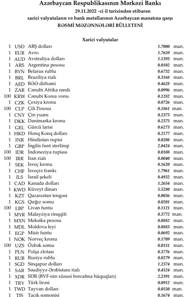 Rəsmi məzənnələr açıqlandı