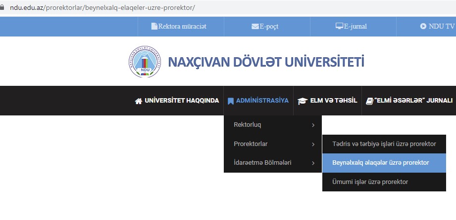 Universitetin saytında prorektorlar bölməsində beynəlxalq əlaqələr üzrə prorektor bölməsi hazırda boşdur.