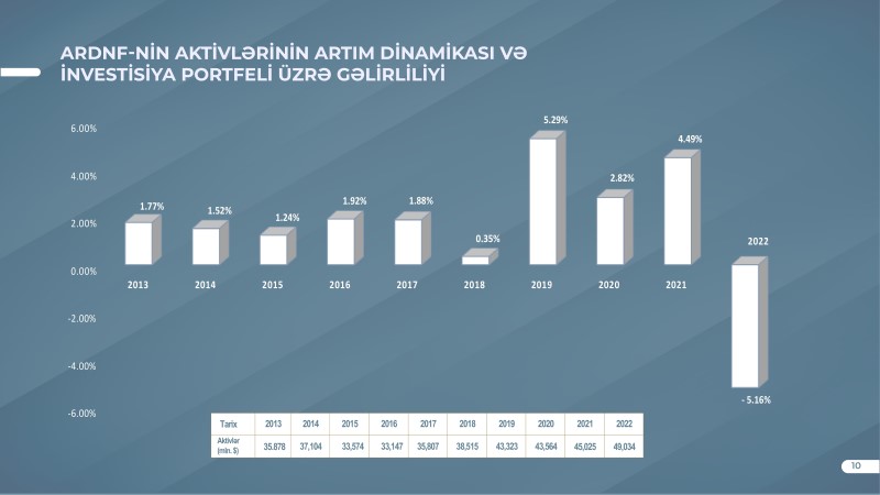 ADRNF-nin 2022-ci il üzrə investisiya fəaliyyətinin yekunları əlavədə təqdim olunur.