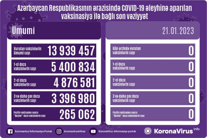 Azərbaycanda son sutkada koronavirus (COVID-19) əleyhinə vaksin vurulmayıb.