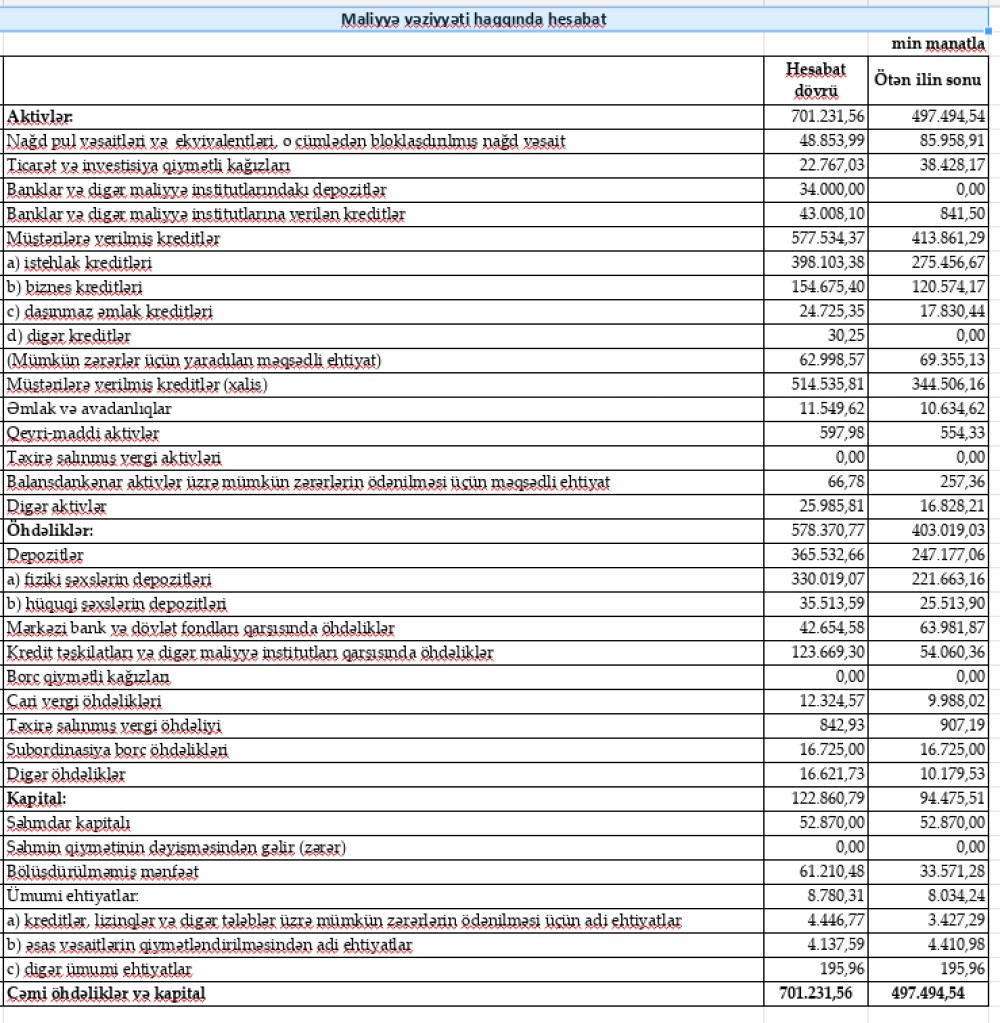 2022-ci ildə mümkün zərərlər üçün yaradılan ehtiyatlardan 12 milyon 103 manat azad olmuş və mənfəətə əlavə edilib. 2021-ci ildə ehtiyatdan azad olmuş 11 milyon 124 min manat mənfəətə əlavə edilmişdi.