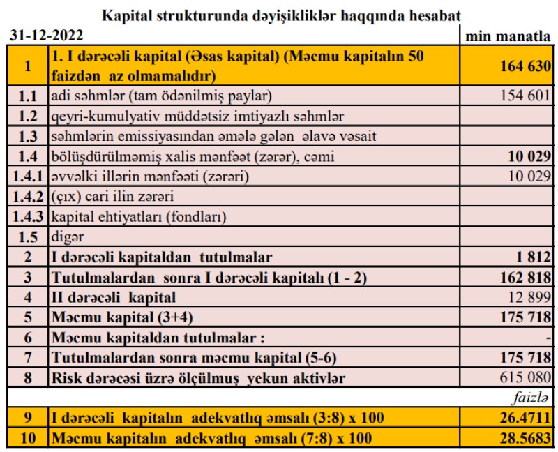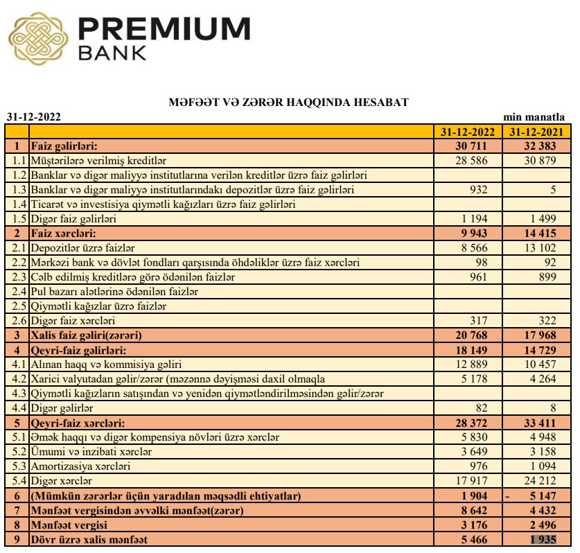 "Premium Bank" ASC 2022-ci il üzrə maliyyə göstəricilərini açıqlayıb.
