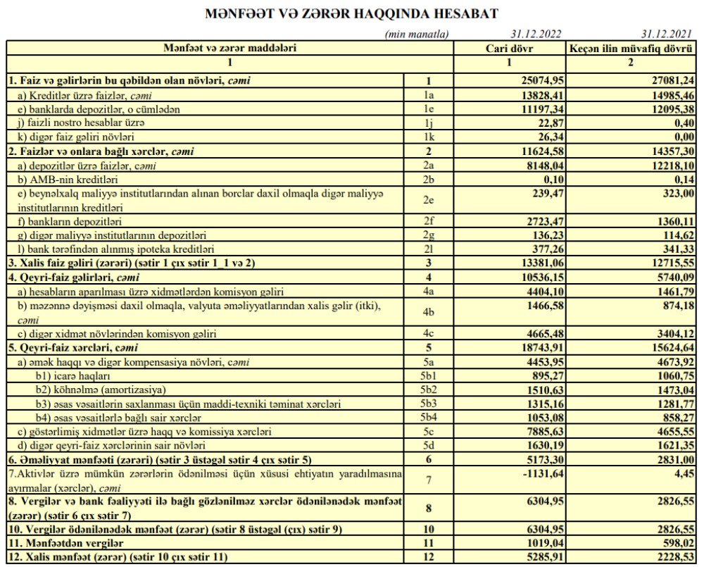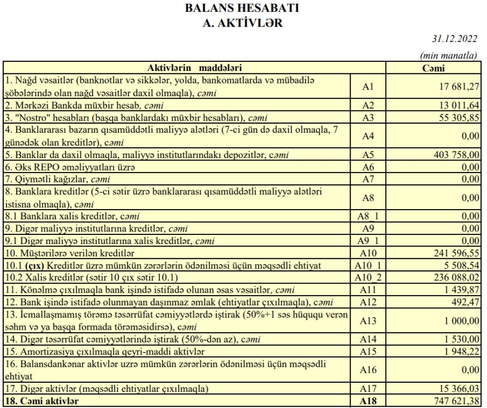 "Azərbaycan Sənaye Bankı" ASC 2022-ci il üzrə maliyyə göstəricilərini açıqlayıb.