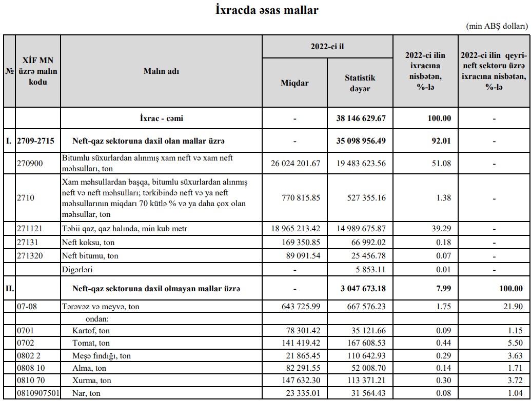 2022-ci ildə (yanvar-dekabr) Azərbaycanın ən çox ixrac və idxal etdiyi mallar.