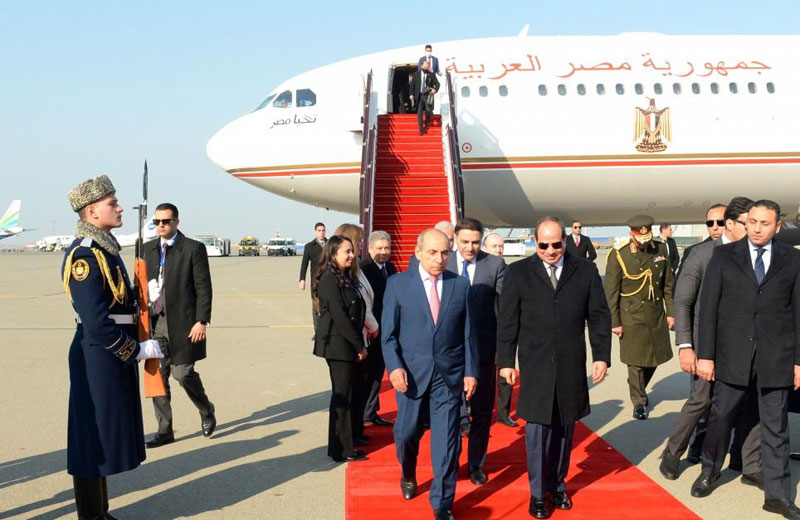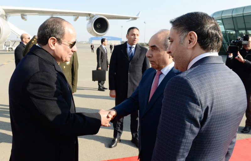 Misir Prezidenti Əbdülfəttah Əs-Sisini hava limanında Baş nazirin birinci müavini Yaqub Eyyubov, xarici işlər nazirinin müavini Fariz Rzayev və digər rəsmi şəxslər qarşılayıblar.