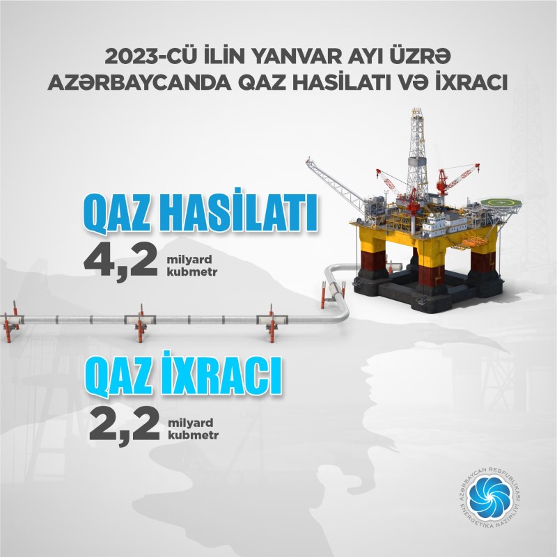 Nazir qeyd edib ki, yanvarda 4% artımla hasil edilmiş 4.2 milyard kubmetr qazın 2.2 milyard kubmetri ixrac olunub.