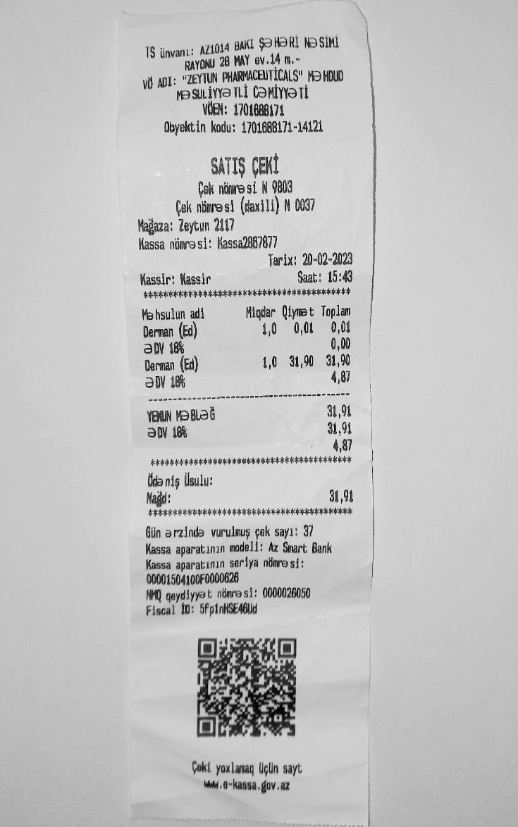 Satış qəbzini aldım. Qəbzdə aldığım malın adı yazılmamışdı...