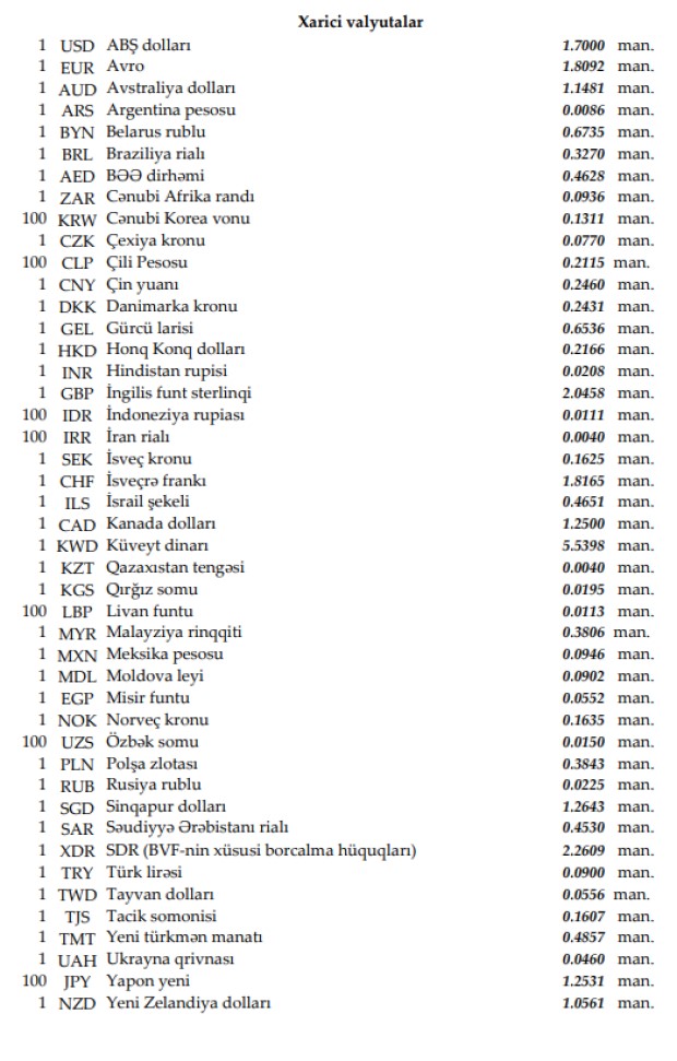 Dolların bazar ertəsi üçün rəsmi məzənnəsi müəyyən olunub
