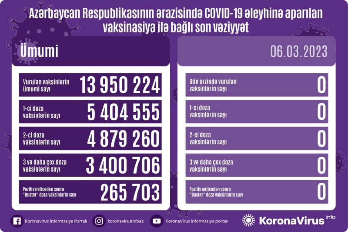 Azərbaycanda son sutkada koronavirus (COVID-19) əleyhinə vaksin vurulmayıb.