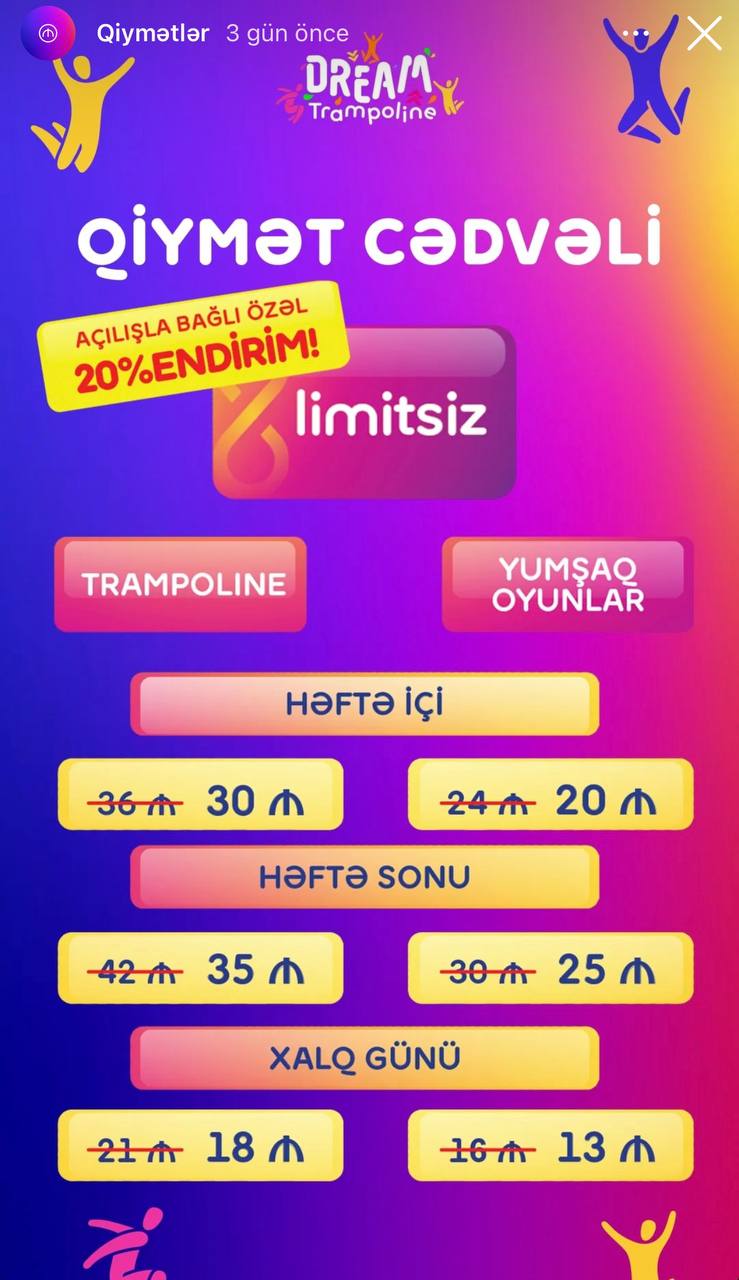 “Dream Trampoline” əyləncə mərkəzinin açılışa özəl qiymətləri: