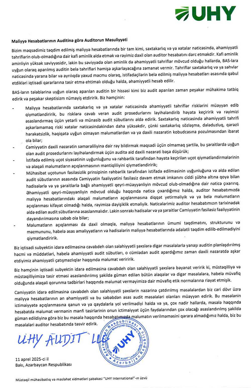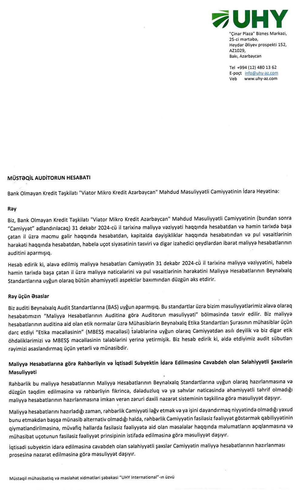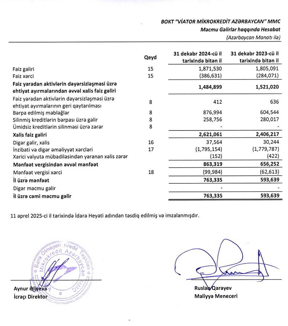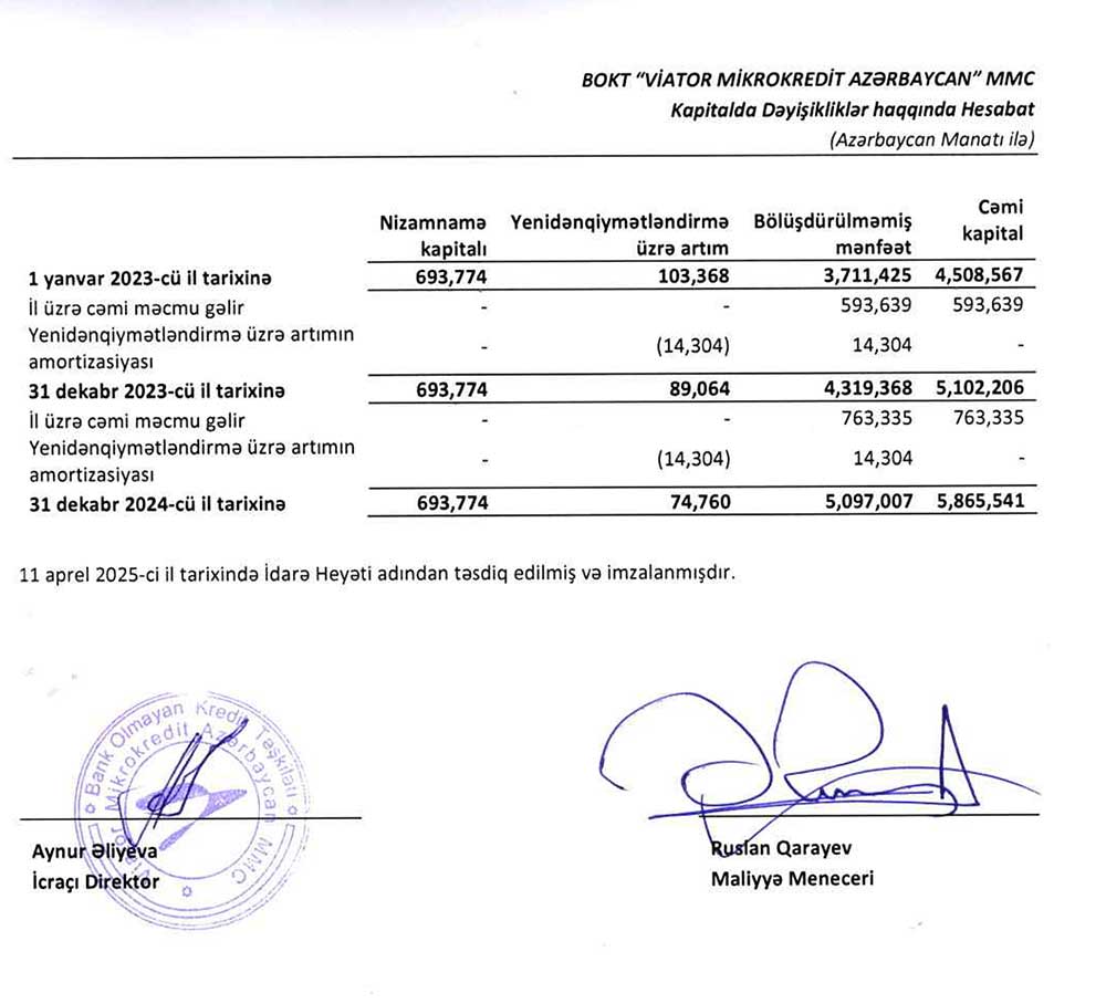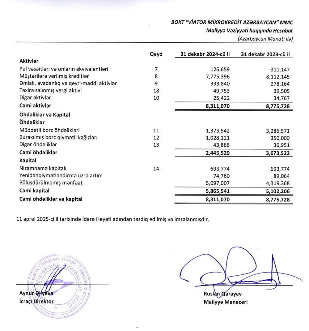 BOKT “Viator Mikrokredit Azərbaycan” MMC-nin 2024-cü il üzrə maliyyə və kənar audit hesabatları