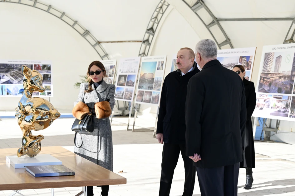 Prezident İlham Əliyev, birinci xanım Mehriban Əliyeva və qızları əvvəlcə “Qarabağ atları” heykəltaraşlıq kompleksi ilə tanış oldular. Vətən müharibəsindəki Qələbəmizə həsr edilmiş və milli irsimizin rəmzi olan bu kompleks “Qarabağ atları” meydanında ucaldılıb. Kompleksdə "Soltan", "Ürək", "Sereyin", "Aypara", "Şöhrət", "Ötqəm" və "İldırım" adlı ümumilikdə 7 Qarabağ atının heykəli var. Bu kompleksin təməlini 2022-ci ilin dekabrında Prezident İlham Əliyev qoyub. Kompozisiya amerikalı heykəltaraş Robert Sammers tərəfindən yaradılıb. Onun Dallas şəhərində “Mal-qara sürülməsi”, Kaliforniya hava limanında “Con Ueyn” və digər əsərləri dünyaca məşhurdur.