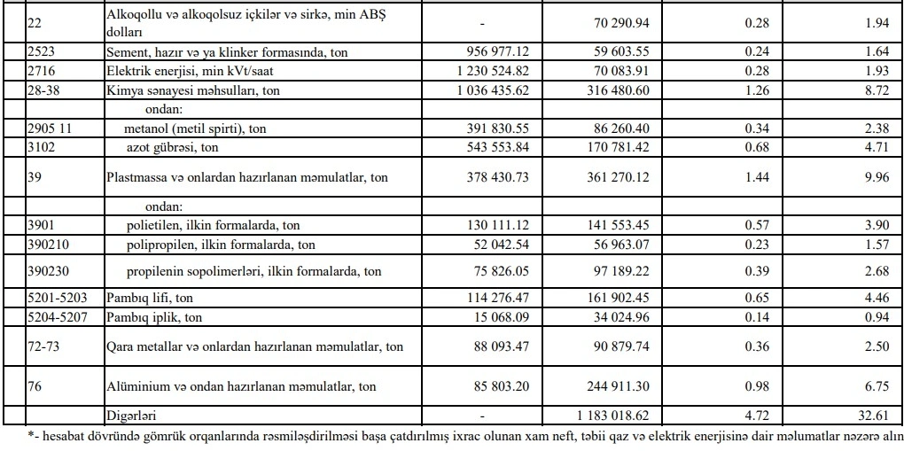 Azərbaycanın ən çox ixrac və idxal etdiyi mallar - YENİ SİYAHI
