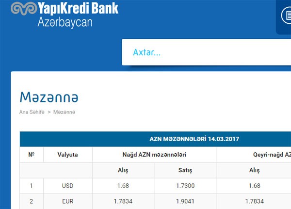 Yapı Kredi Bank Azərbaycan alışı 1.70 manatdan 1.68 manata, satışı isə 1.76 manatda 1.73 manata, NikoylBank alışı 1.71 manatdan 1.67 manata, satışı isə 1.77 manatdan 1.75 manata endirib.