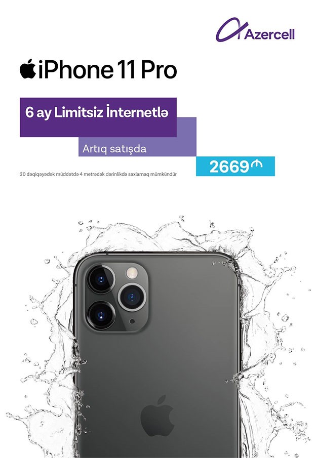 Oktyabr ayının 18-dən etibarən Azercell-in Eksklüziv mağazalarında iPhone 11, iPhone 11 Pro və iPhone ProMax telefonlarını əldə edən hər bir abunəçiyə 6 ay ərzində Limitsiz İnternet paketi hədiyyə olunacaq.