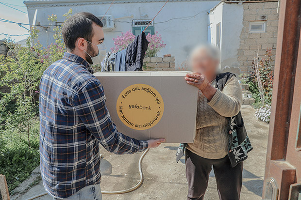 İkicə həftə ərzində Yelo Bank komandası Bakı, Abşeron və Sumqayıtdan olan 300-dən çox tənha ahılı, şəhid və məcburi kökçün ailəsini ziyarət edərək, onlara ərzaq və gigiyena məhsullarını çatdırıb. Məqsədimiz onların #EvdəQal çağırışına əməl etməsi və xoş əhval-ruhiyyə bəxş etmək idi.
