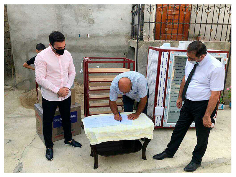 Abşeron rayonu ərazisində yaşayan, Yusifov Bəhruz Yusif oğluna, məcburi köçkün, hazırda Pirallahı qəsəbəsində müvəqqəti məskunlaşmış Əşrəfova Yeganə Xasay qızına, və Bakı şəhəri, Suraxanı rayon sakini Quliyeva Şəfiqə Yusup qızına un məmulatları istehsal etməsi üçün lazımi avadanlıqlar təmin etməklə dəstək göstərilmişdir.