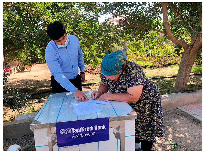 Məlumat üçün bildirək ki, “Yapı Kredi Bank Azərbaycan” korporativ sosial məsuliyyət prinsiplərindən irəli gələrək Əmək və Əhalinin Sosial Müdafiəsi Nazirliyi, Azərbaycan Respublikasının Mərkəzi Bank və Azərbaycan Banklar Assosiasiyası arasında aztəminatlı əhali qruplarının özünüməşğulluğunun təşkilinə köməklik göstərilməsi sahəsində əməkdaşlığa dair imzalanmış Memoranduma qoşularaq cari ilin may ayından etibarən bir neçə aztəminatlı şəxsin öz işini qurması üçün bütün lazımlı avadanlıqlarla təmin edilməsinə dəstək verir. Bank növbəti aylarda bu istiqamətdə işləri davam etdirərək, daha bir neçə aztəminatlı ailənin kiçik biznes idealarının reallaşmasına töhvə verəcəkdir.
