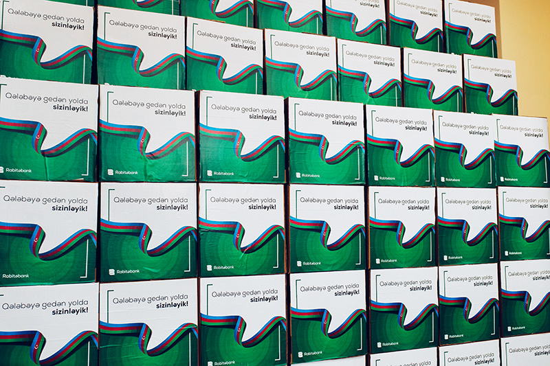Bununla əlaqədar gündəlik tələbatları özündə birləşdirən individual əsgər payları tədarük edilib. Əsgərlərin maddi texniki təminatının gücləndirilməsi məqsədilə qutularda ilkin tibbi yardım üçün ləvazimatlar, isti üst geyim və alt geyimi, həmçinin gigiyenik ehtiyaclar toplanılıb. Hazırlanmış əsgər payları Bank tərəfindən ön cəbhədə vuruşan hərbçilərə çatdırılıb.