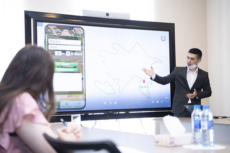 Təqdimat mərasimində mobil tətbiqin yüklənməsi, istifadə qaydaları əyani şəkildə nümayiş olunub.