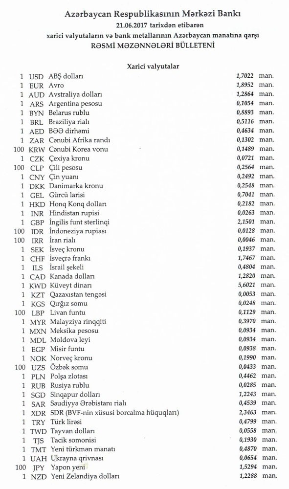 Dolların bazar ertəsi üçün rəsmi məzənnəsi müəyyən olunub
